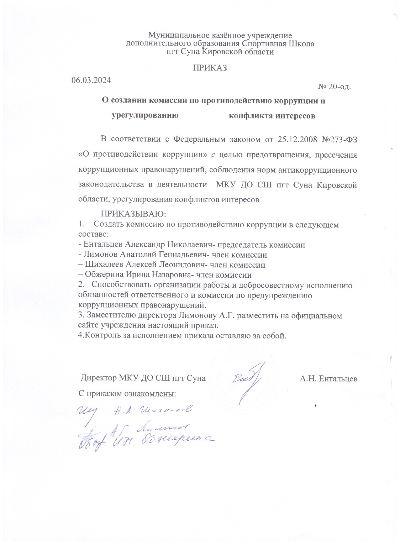 Приказ о создании комиссии по противодействию коррупции